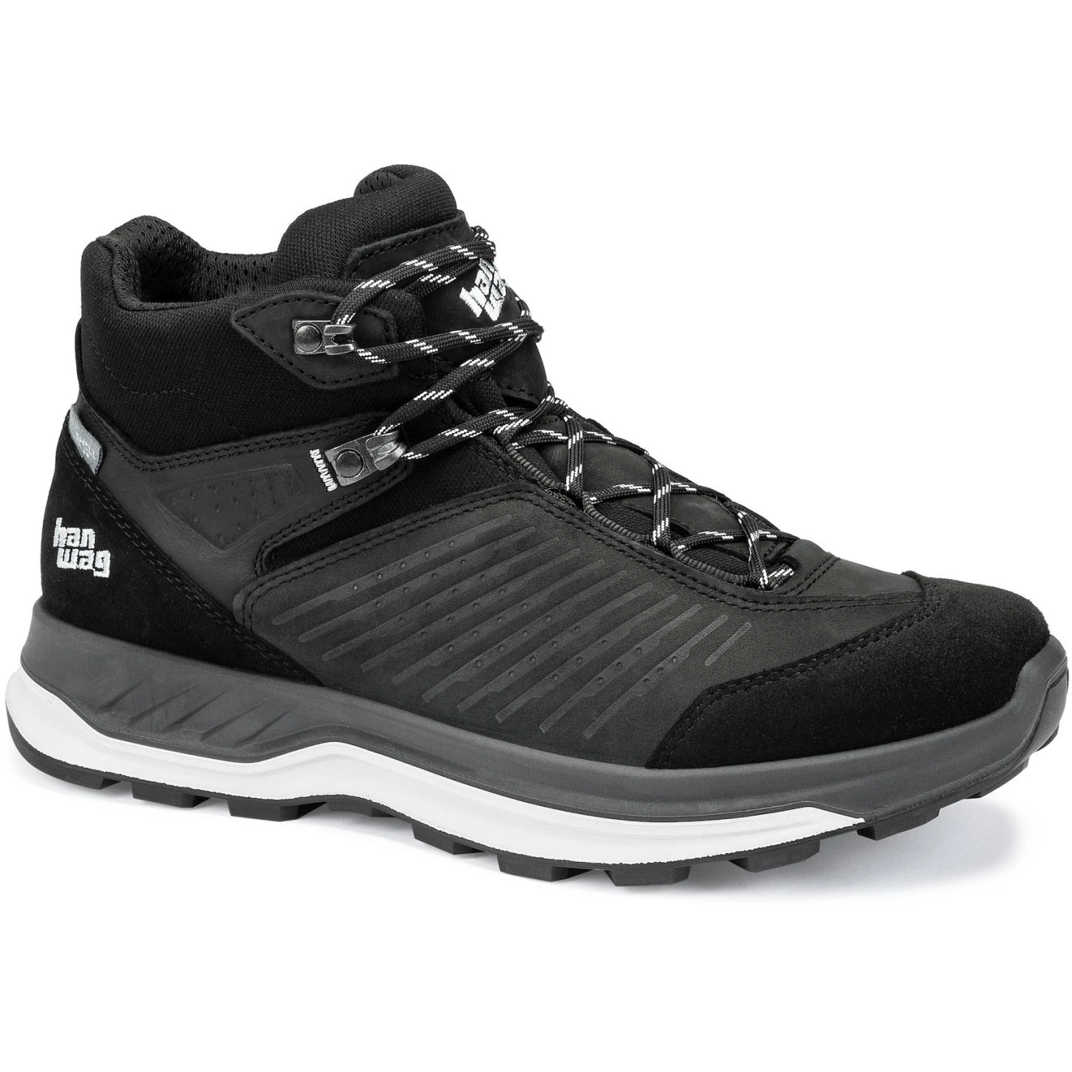 PFC-freier HANWAG EcoShell Membran, isolierender Merinowoll-Einlegesohle und robustem Perwanger Oberleder ausgestattet.